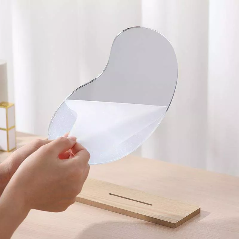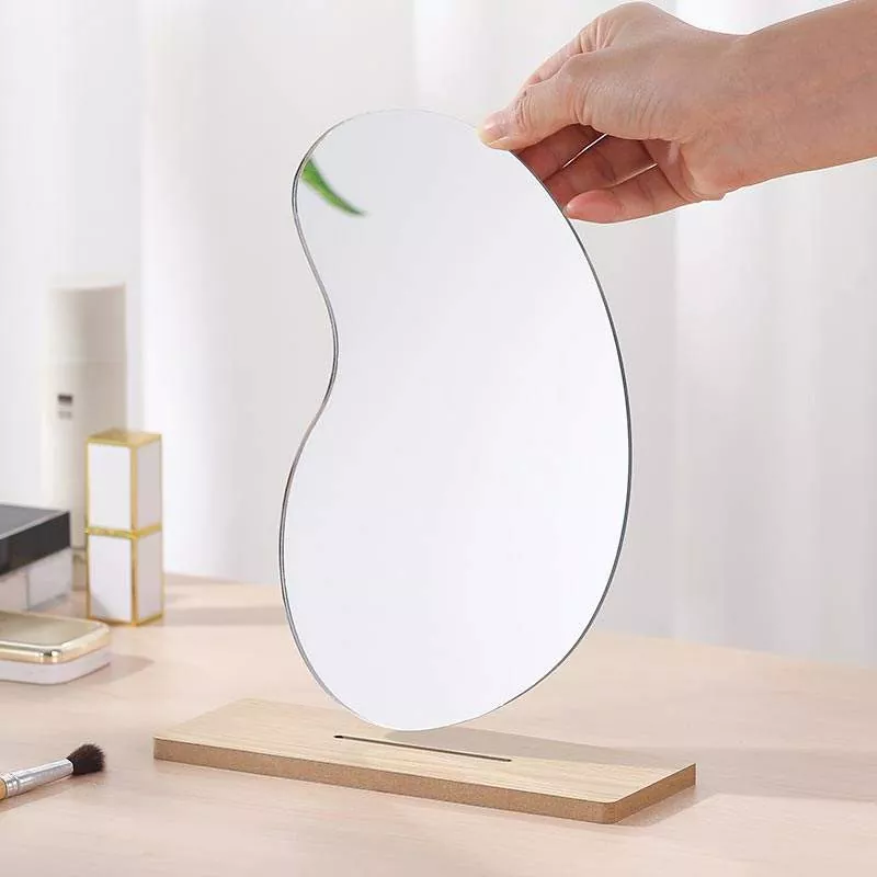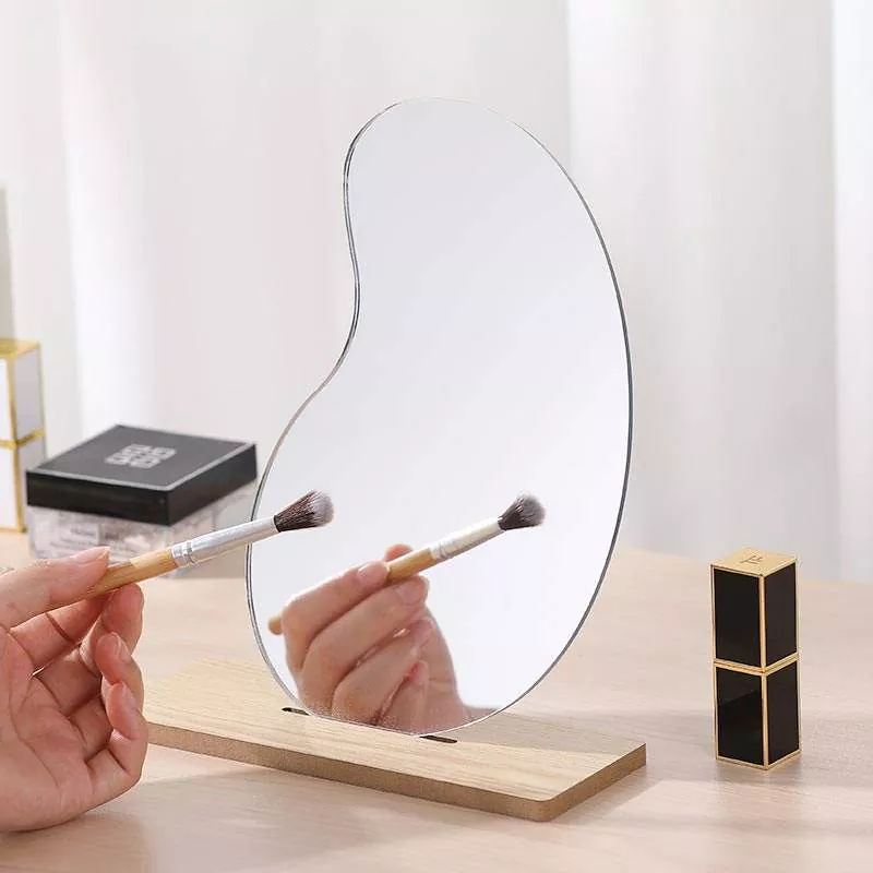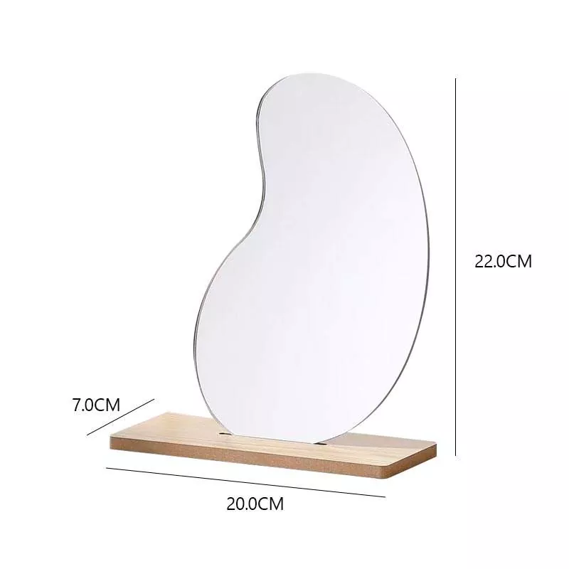 Pangilon meja bergelombang sing ora teratur iki nduweni siluet artistik minimalis sing digabungake kanthi apik karo dekorasi omah modern. Digawe nganggo kaca bening definisi dhuwur lan dhasar kayu sing alus, menehi refleksi tanpa distorsi sing cocog kanggo aplikasi dandanan, rutinitas perawatan kulit, lan dandan saben dina.