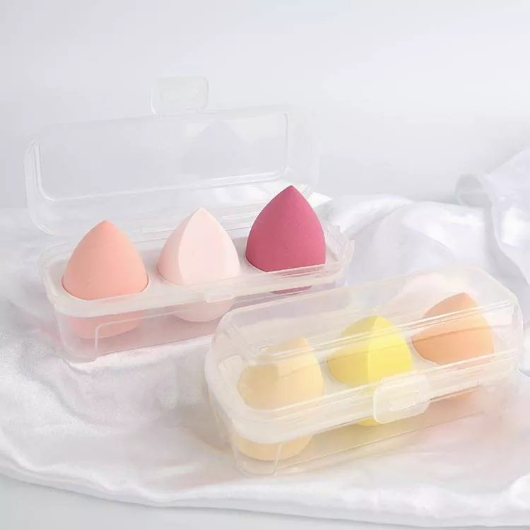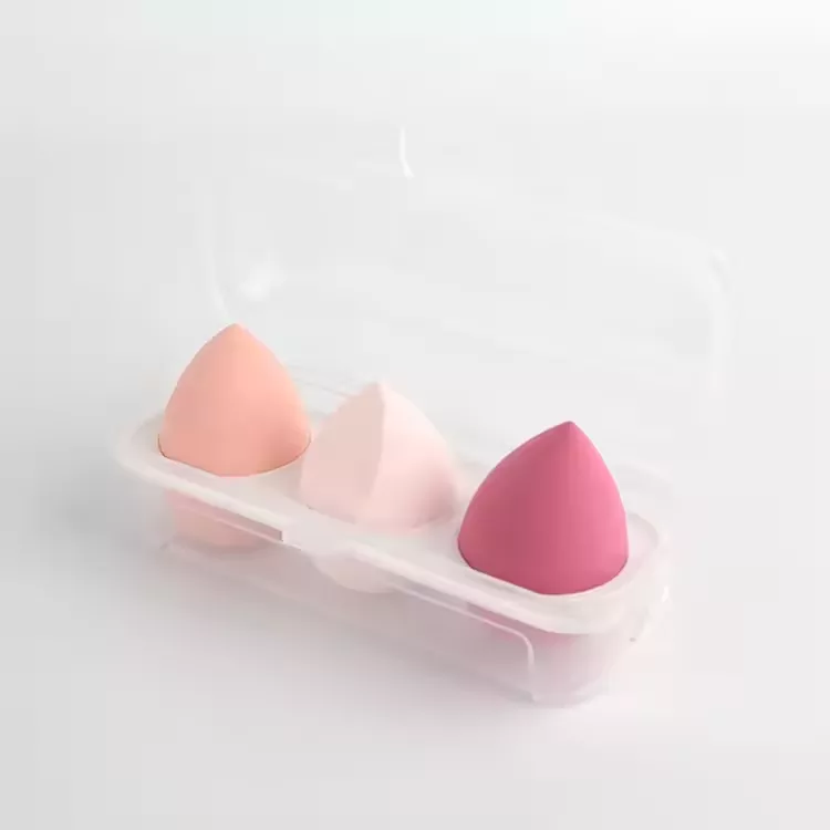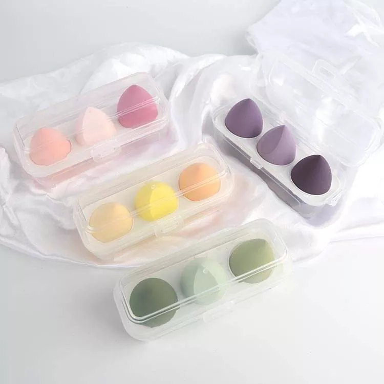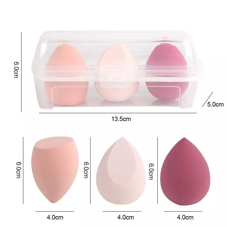 Set Spons Makeup iki nduweni spons alus lan non-lateks ing werna pastel. Dampen spons, remet metu keluwihan banyu, banjur mumbul foundation, concealer, utawa isin menyang kulit kanggo streak-free, airbrushed Rampung. Kasus sing kalebu tetep resik lan portabel.