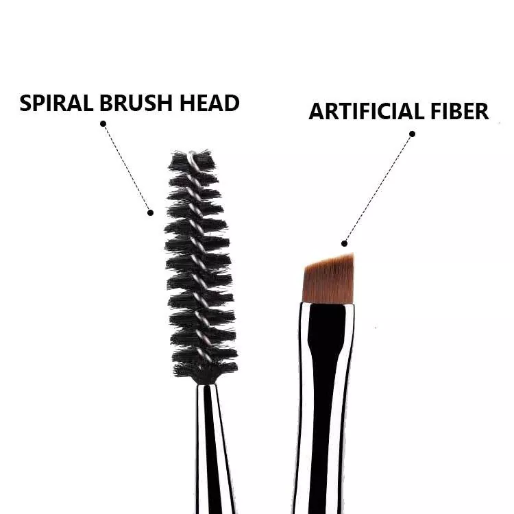 Eye Makeup Brush Single minangka alat dual-ended kanthi bulu sintetis sing alus. Gunakake sikat angled kanggo nemtokake alis kanthi tepat lan aplikasi eyeliner, banjur gunakake spoolie kanggo ngresiki lan nyampur rambut alis kanggo tampilan mata sing polesan lan alami.