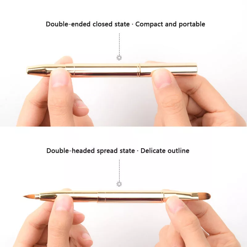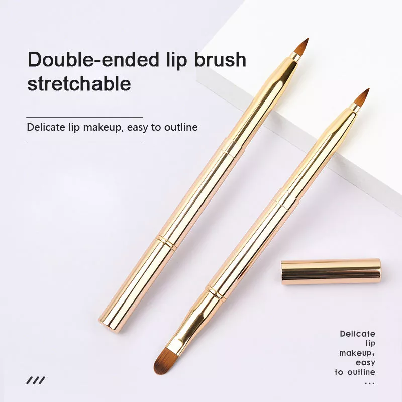 Brush Makeup Tunggal Lip iki nduweni desain dual-ended kanthi bulu sintetis sing alus. Nduwe tip sing tepat kanggo njelasake garis lambe lan sikat sing rata kanggo ngisi warna, kanthi gagang logam sing ramping supaya gampang dicekel lan digunakake.