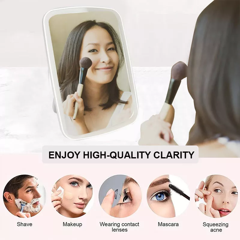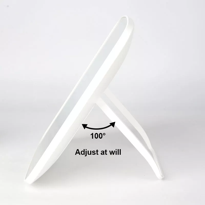 Pangilon Make Up Led Tabletop iki nduweni 3 mode cahya sing bisa diatur (kelangan, alami, anget) kanggo cocog karo skenario dandanan sing beda-beda, menehi cahya sing bener kanggo aplikasi sing tepat. Stand luwes 100 ° ngidini sudut pandang sing fleksibel, dene desain sing ramping lan entheng njamin portabilitas sing gampang.