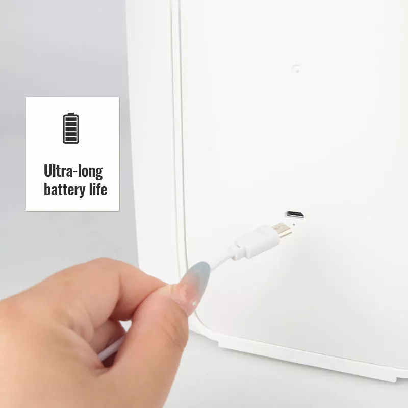 Didhukung dening baterei sing bisa diisi ulang, pangilon iki ndhukung pangisi daya cepet USB-C lan menehi umur baterei sing dawa banget kanggo panggunaan sing luwih dawa. Ora perlu ngisi daya sing kerep, saengga bisa dipercaya kanggo panggunaan omah saben dina lan lelungan dawa. Desain LED hemat energi uga nyuda konsumsi daya.
